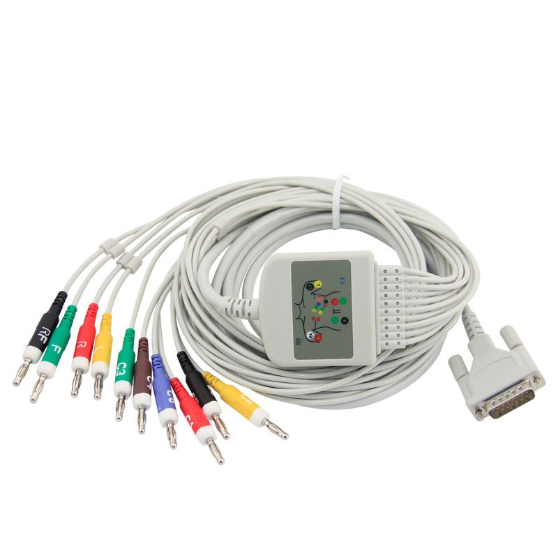 Schiller ECG Cable with 15pins and 10 Leads Banana ECG Cable 4.0 Resting Patient Cable with banana plugs for use with Schiller ECG Machines.