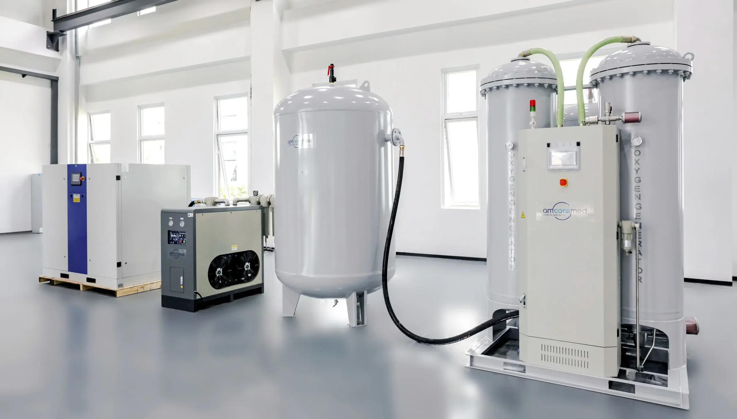 AmcareMed 99.5% Ultra High Purity Oxygen Generators utilize advanced PSA technology to deliver up to 99.5% purity oxygen. By adding a purified oxygen generator unit, it meets the stringent demands of medical and cleanroom applications.