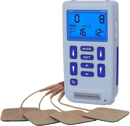 Fully Digital TENS and EMS Combo unit with AC power! This is one of our top of the line units and is a fully digital TENS and EMS Combo unit with 17 modes (5 TENS, 3 EMS, and 9 Preprogrammed TENS modes), 100mA strength with 99 steps of intensity control, and is dual powered by a 9V battery or AC adaptor (included). Large LCD screen and user friendly push buttons with pause function makes repositioning electrodes a snap. Power saving feature turns unit off in 5 minutes if not being used. Fully digital for effective and reliable treatment!