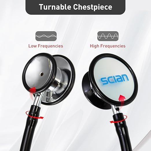 - Dual Head Stethoscope for Adults & Kids: Two-side chestpiece, rotate the stem to use the diaphragm or bell, allows to catch high and low frequency sounds as needed.